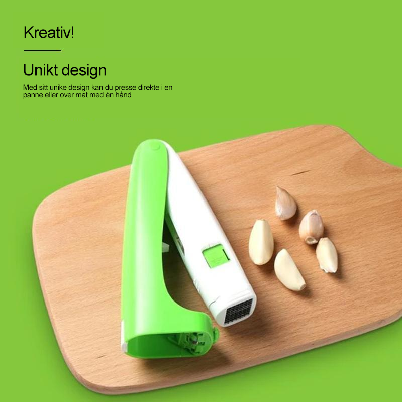 Takket være den robuste konstruksjonen og ergonomiske designen kan du enkelt hakke uskrellede hvitløksfedd og skrellet rotingefær. Enkel å bruke og kan kutte ingrediensene i perfekte små terninger med bare noen få trykk.